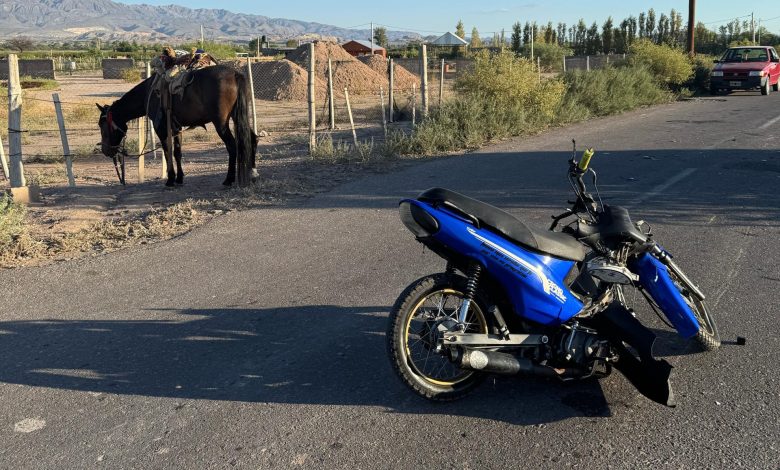 Albardón: dos hombres terminaron heridos en un choque entre un caballo y una moto