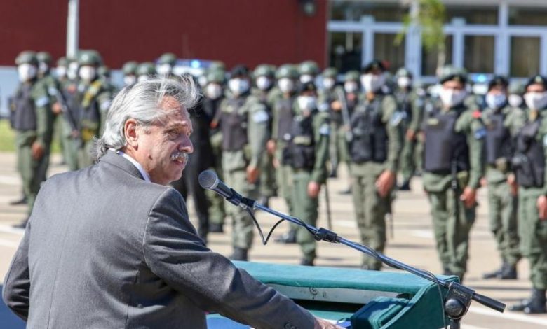 «No bajemos los brazos. Estamos haciendo lo que corresponde. No teman, cuando sientan que se están quedando solos, el Estado va a estar al lado suyo», dijo el Presidente en su discurso ante los efectivos de Gendarmería que reforzarán la seguridad en el conurbano bonaerense.