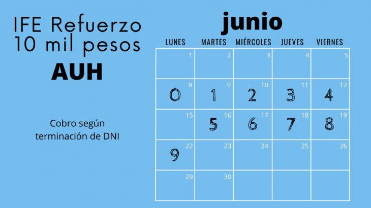Así, quienes cobren por CBU comenzarán a percibir esa ayuda estatal desde el 23 de junio. Aquellos que ya cobraron la primera cuota no deberán realizar «ninguna inscripción» para percibirla nuevamente, aclaró el organismo.