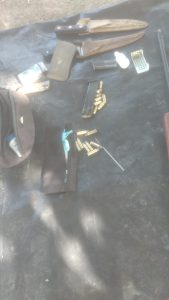 Durante la requisa del vehículo, los uniformados encontraron un importante arsenal: municiones de distintos calibres, cargadores, un revólver calibre .38, un silenciador, una pistola Mini Thunder Bersa calibre .40 con cargador y proyectiles, una mira telescópica y un rifle calibre .22. Además, hallaron sustancia estupefaciente, presuntamente cocaína, junto a dos cuchillas, una cortapluma y un hacha.