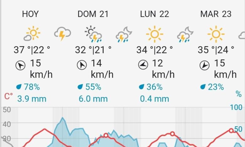 Para el lunes 22 de enero la máxima pronosticada es de 32° con amenaza de lluvia y para el martes próximo la marca mercurial ascenderá a los 35°.