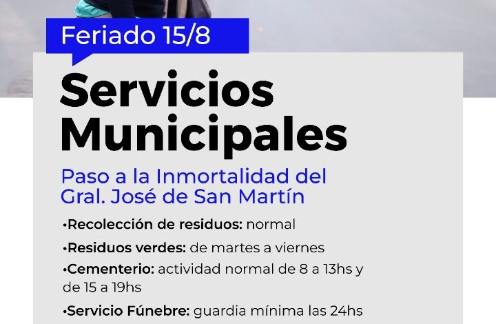 La Municipalidad de Capital informa el funcionamiento de las prestaciones durante el lunes 15 de agosto, ya que fue declarado feriado nacional.