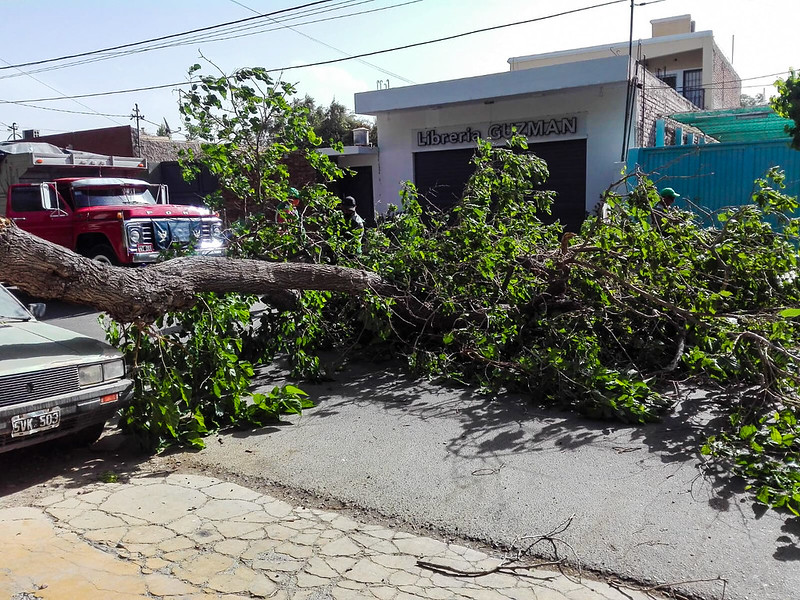 Este sábado personal municipal de servicios de Capital atendió más de 10 reclamos vinculados a caída de ramas o árboles desgajados por la acción del ventarrón. El fenómeno climático ocasionó diversas situaciones de emergencias en los distritos del departamento.