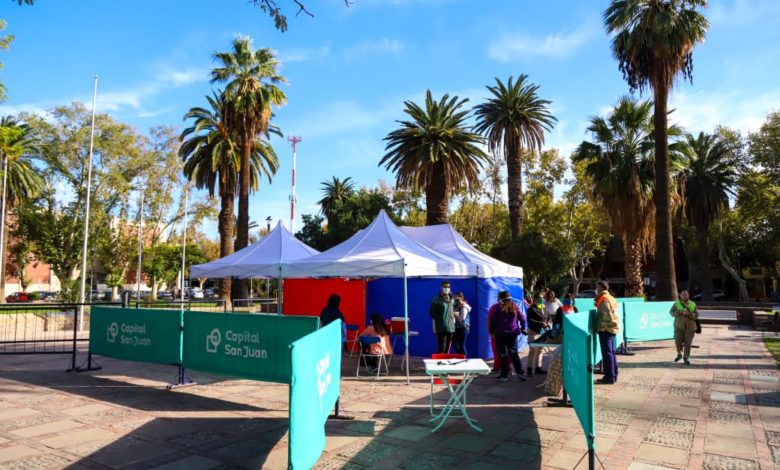 Además del Vacunatorio Central y los CAPS, la Municipalidad de Capital reforzó la vacunación con un operativo especial con personal de la Dirección de Salud Municipal y el apoyo de Monitores Urbanos, en Plaza Aberastain.