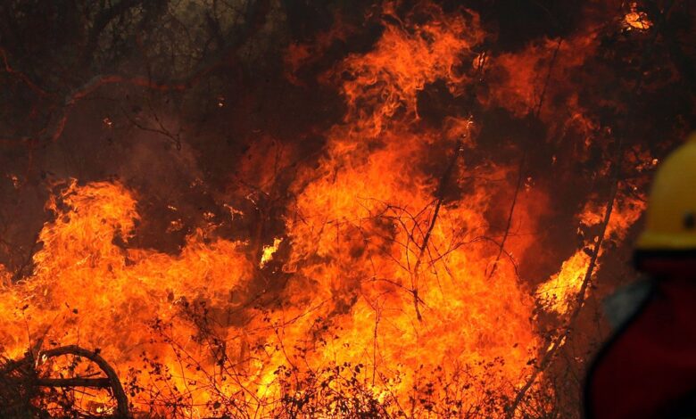 Varias dotaciones de bomberos debieron actuar en un incendio forestal avenida De Los Ríos entre calle Enfermera Medina y calle La Plata.