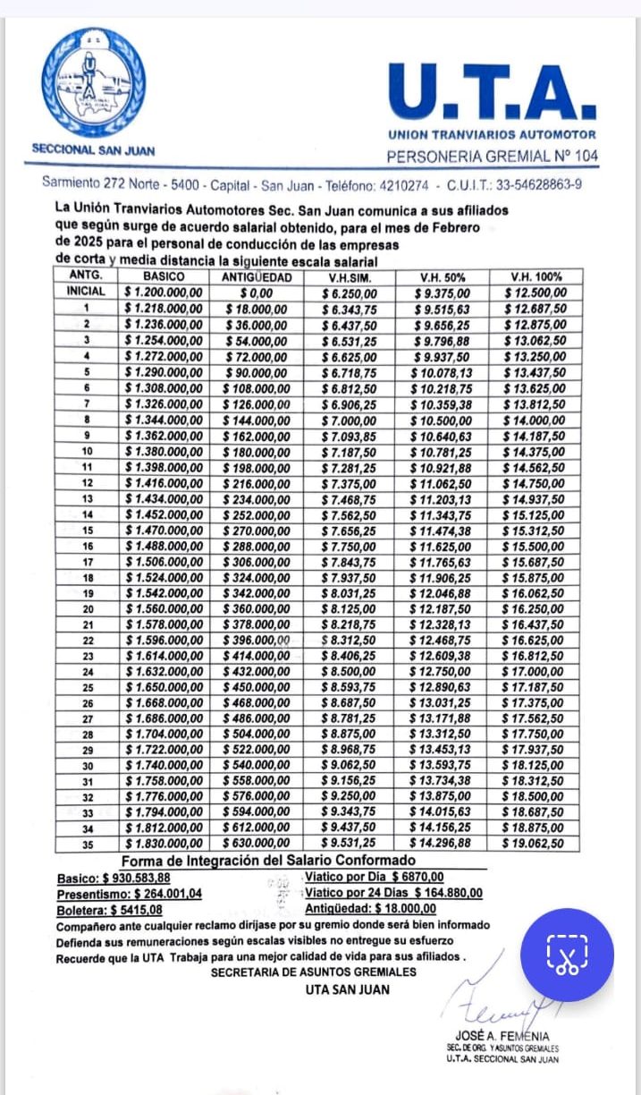 En este sentido los choferes locales empezaron a cobrar salarios con nueva escala salarial que coincide con la escala salarial que se paga en todo el interior del país. El nuevo salario que se concretó para los trabajadores del sector es que se pactó para el AMBA por lo que en San Juan se verá impactado en los sueldos en los próximos meses.