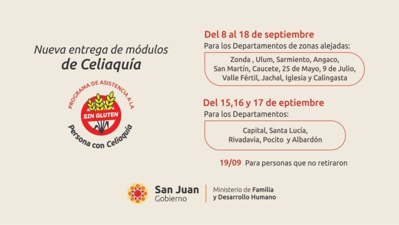 Vale destacar que en los departamentos Chimbas y Rawson, junto con las entregas de los módulos, se ofrecerá una charla informativa en cada lugar, para promover la alimentación saludable para quienes tienen este diagnóstico y el mejor aprovechamiento de los alimentos sin TACC.
