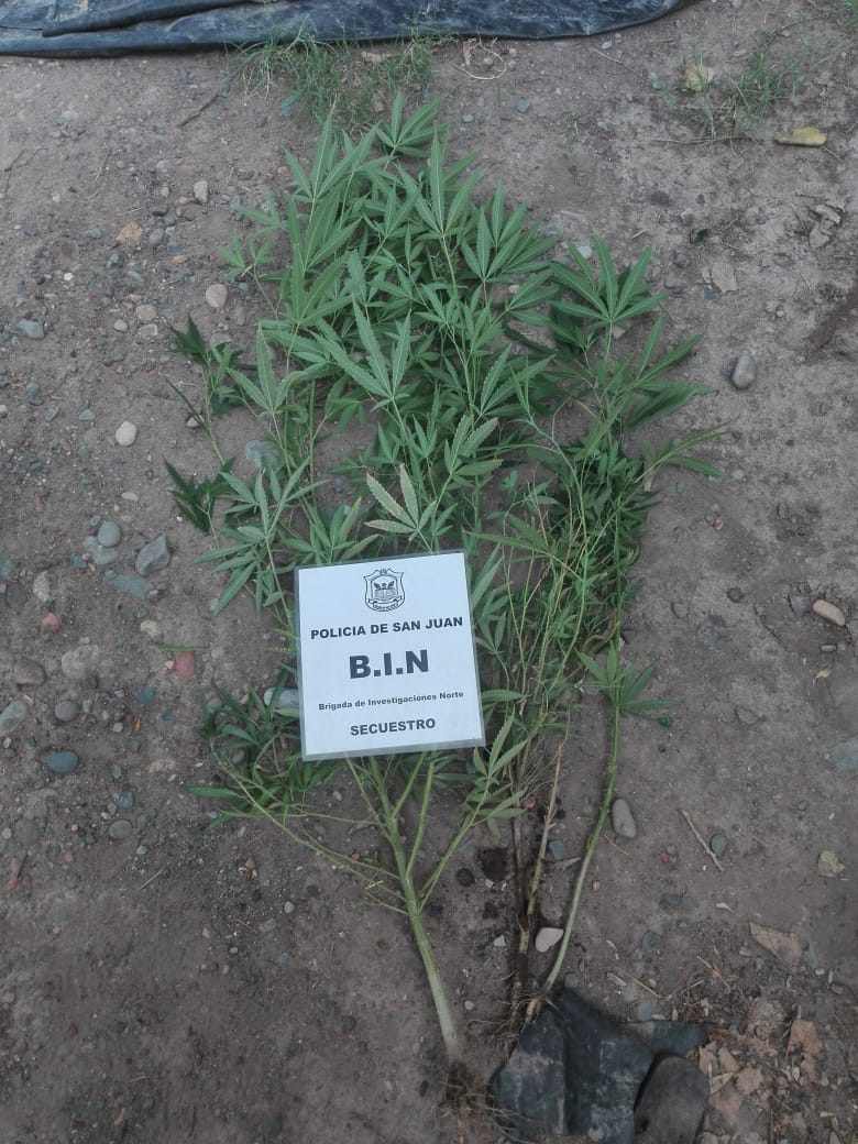 Al concretar el allanamiento los efectivos no solo encontraron la todo terreno sino también se iban a encontrar con una plantación de plantas de marihuana. Una de ellas con una altura de 1,60 metros de altura y dos restantes de 90 cm de altura. De esta manera intervino el Departamento de Drogas Ilegales de la Policía de San Juan junto al Juzgado Federal en turno.