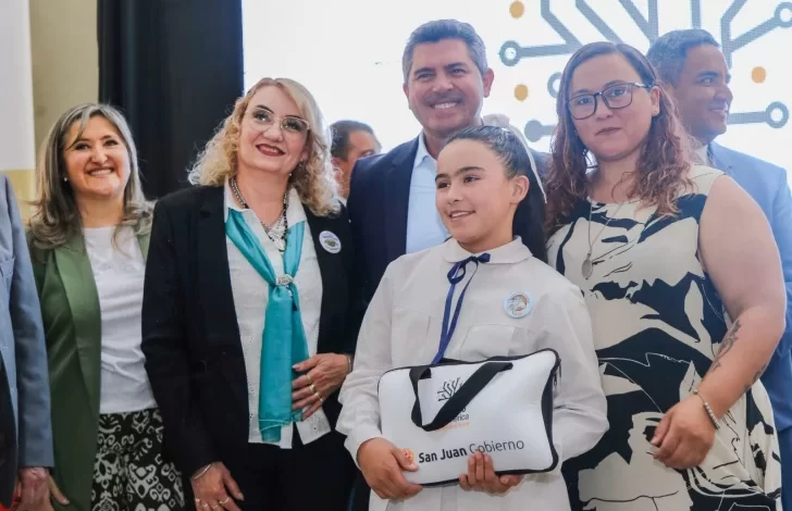 El gobernador Marcelo Orrego, junto a la ministra de Educación, Silvia Fuentes, encabezó una nueva entrega de computadoras del programa “Maestro de América, cultivando el futuro”, que promueve la alfabetización digital y la innovación pedagógica en las aulas. En esta ocasión se entregaron más de 1.200 netbooks a estudiantes de 5to y 6to grado del departamento Albardón, en un acto realizado en la escuela Juan Mantovani.