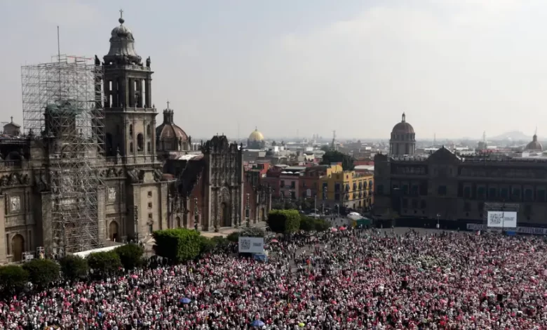 Decenas de miles de personas se concentraron este domingo (18.02.2024) en el Zócalo, principal plaza de México, para exigir «voto libre» en las elecciones presidenciales del 2 de junio, que perfilan al oficialismo de izquierda como gran favorito.
