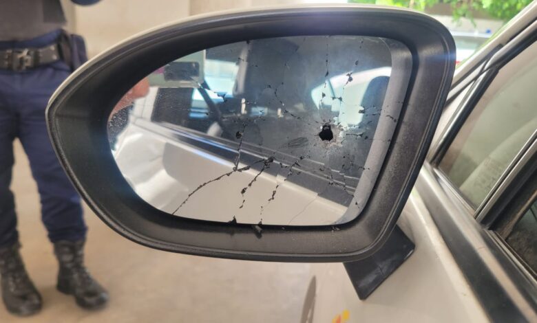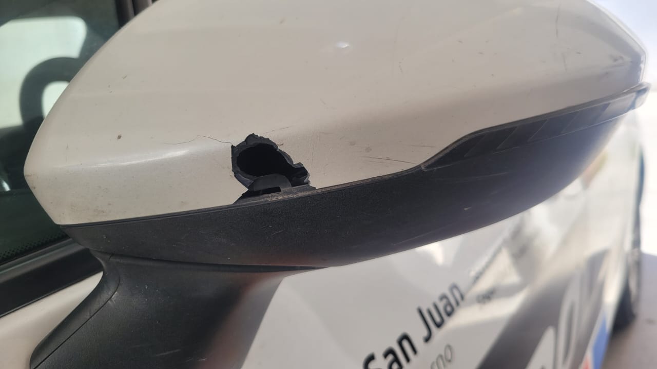 En ese instante el malviviente se dio vuelta varias veces y disparaba al policía que lo perseguía y al patrullero. Uno de los impactos de bala dio en uno de los espejos retrovisores de la patrulla mientras que el otro impactó en el cartel de un vendedor de parripollo.