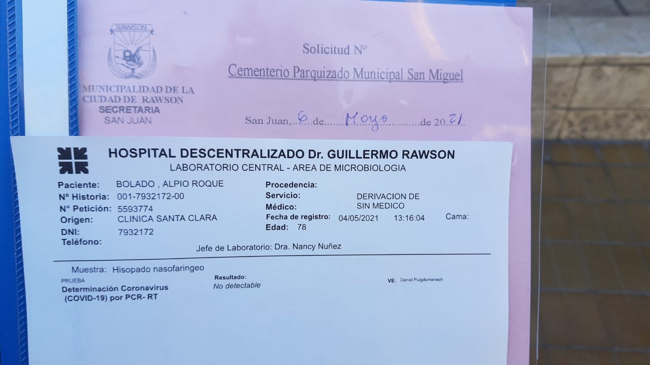 De todas maneras y sin saber la causa de la muerte, Santa Clara emitió a los familiares un certificado de defunción con el sello de COVID.