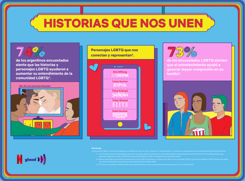 De la encuesta elaborada en el mes de mayo de este año se obtuvieron 1000 respuestas. Cerca del 70 % de las personas argentinas dijeron que series como «Élite» y «Sex Education», y personajes como Casey de «Atypical» y Robin de «Stranger Things», ayudaron a aumentar su entendimiento de la comunidad LGBTQI+ y a mejorar sus propias relaciones interpersonales con personas LGBTQI+.