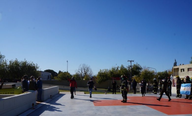 Integrantes de los distintos cuarteles pertenecientes a la Federación de Bomberos Voluntarios de San Juan se ubicaron en el helipuerto del hospital y con emotivas palabras reconocieron la labor del personal sanitario en estos críticos momentos de lucha contra la Pandemia.