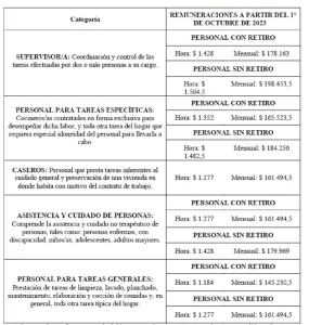 Con el último tramo de aumento del 12% establecido para las empleadas domésticas durante octubre 2023, que se liquida a mes vencido, la hora y el mes de trabajo en casas particulares deberá pagarse de la siguiente manera: