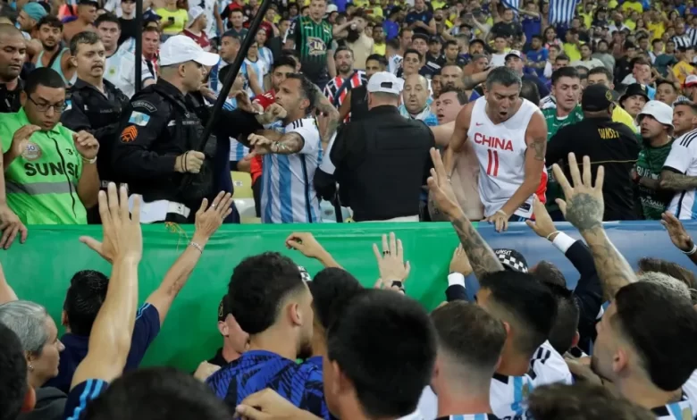 Se metieron incluso dentro de las plateas. Había policías que tenían pedazos de bancos. Lo Celso, De Paul, Tagliafico, Cuti Romero, Otamendi y Messi saltaron a la platea. Hubo mucho nerviosismo, los futbolistas pedían calma y seguía la represión. Los hinchas argentinos estaban en el medio de la torcida organizada de Brasil, algo inexplicable si se quería prevenir.