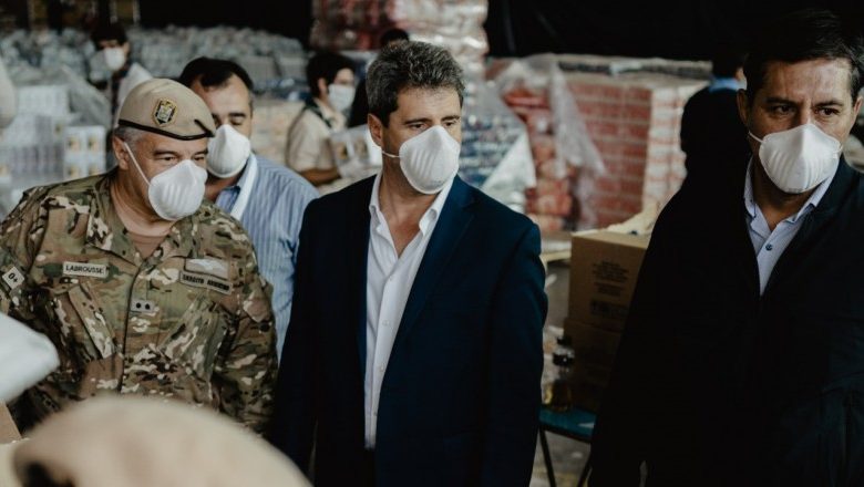 El gobernador Uñac recorrió el depósito donde se recepciona, clasifica y despachan las ayudas alimentarias destinada a 30 mil familias que no presentan beneficio social ni trabajo registrado entre sus integrantes.