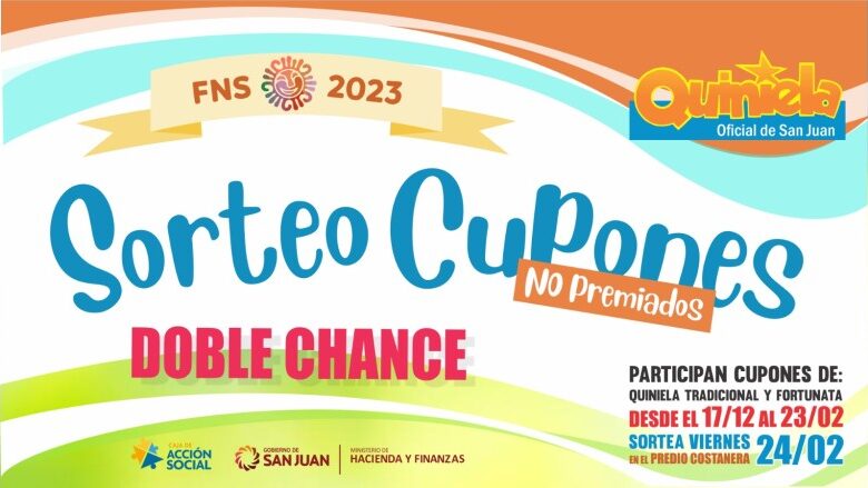 Será a las 22 horas en el Escenario Conectados y participarán todos los cupones no premiados de la Quiniela de San Juan y Fortunata jugados entre el 17 de diciembre del 2022 y el 23 de febrero de este año por una moto 0km, bicicletas, aires acondicionados, televisor y horno eléctrico.