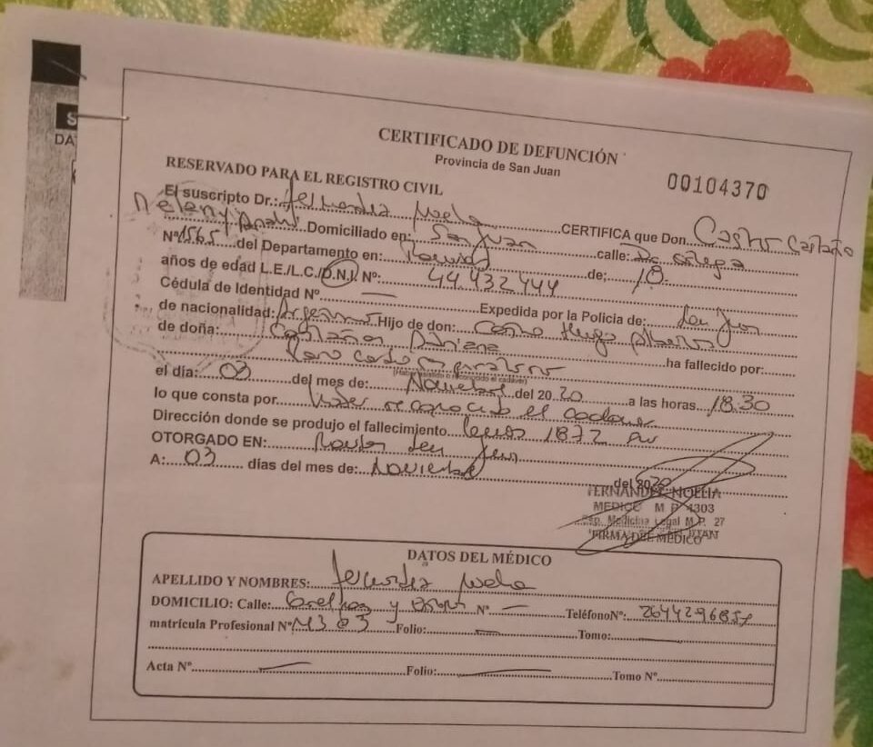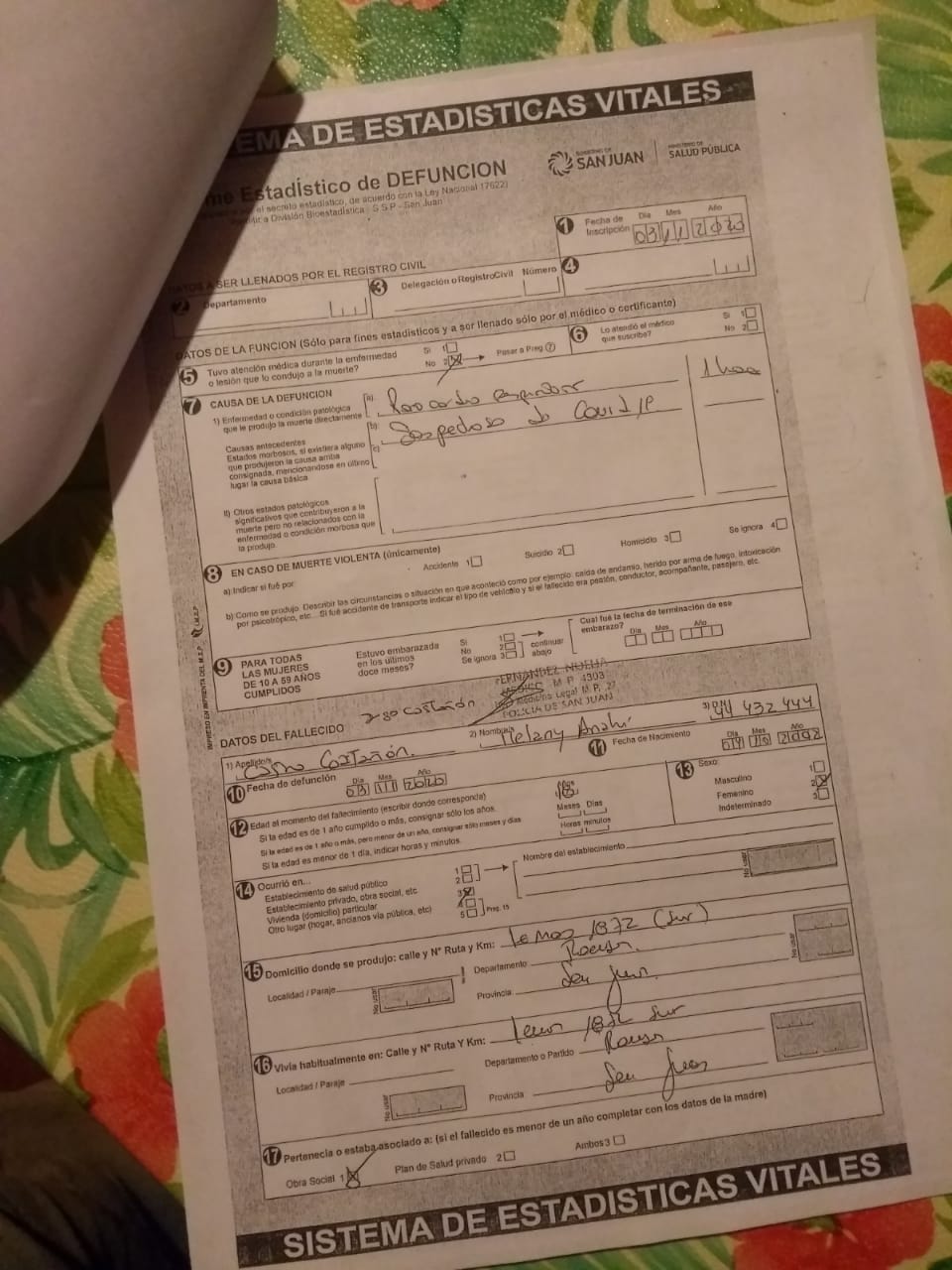 Otra de las informaciones exclusivas a la que accedió este diario tienen que ver con el certificado de defunción de Melanie. Claramente y según consultas a profesionales de la salud por parte de Estación Claridad «hay carencia de datos médicos que dejan saber a ciencia cierta cual fue el motivo de deceso de la muchacha».