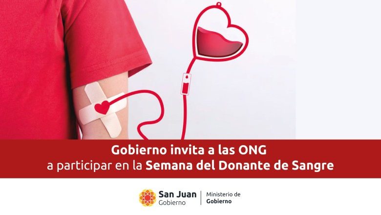 La Dirección de Culto y ONG, dependiente del Ministerio de Gobierno, convocó a organizaciones no gubernamentales de San Juan a participar de la “Semana del Donante de Sangre”, una iniciativa conjunta con el Instituto Provincial de Hemoterapia (IPHEM), el Ministerio de Salud, el Ministerio de Familia y Desarrollo Humano, y el Ministerio de Turismo, Cultura y Deporte.