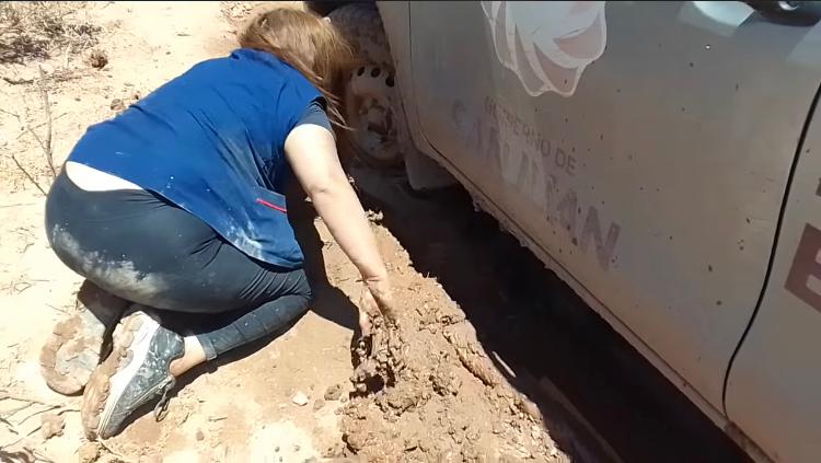 Pero este viernes todo salió mal. Debido a las lluvias de la semana pasada el camino empeoró y la camioneta Toyota Hilux 4×4 quedó enterrada. Si bien en la escuela funciona la red ministerial para una comunicación en caso de emergencia, no hay señal de telefonía celular y todo el pueblo está incomunicado.