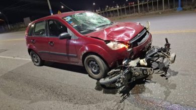 Pocito: un motociclista cruzó un semáforo en rojo y fue arrastrado varios metros por un auto