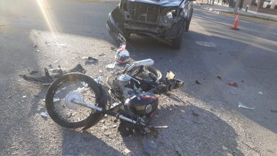 Violento accidente entre camioneta y moto dejó a un hombre hospitalizado