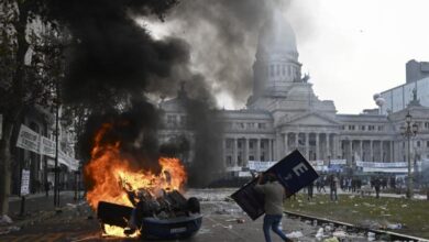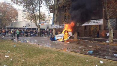 Incendiaron el móvil de Cadena 3 en la movilización frente al Congreso