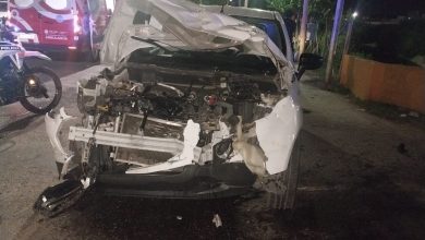 Por un semáforo intermitente, dos camionetas protagonizaron un fuerte choque