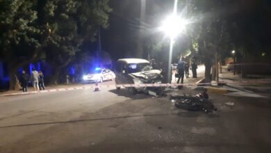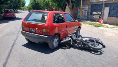 Una moto chocó contra un auto que salía en reversa de un taller mecánico