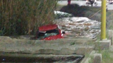 Perdió el control de su auto, volcó y terminó en un canal con agua