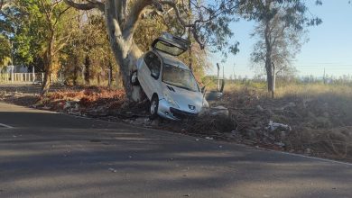 Salió ileso tras hacer un trompo y «subirse» con su auto a un árbol en Zonda