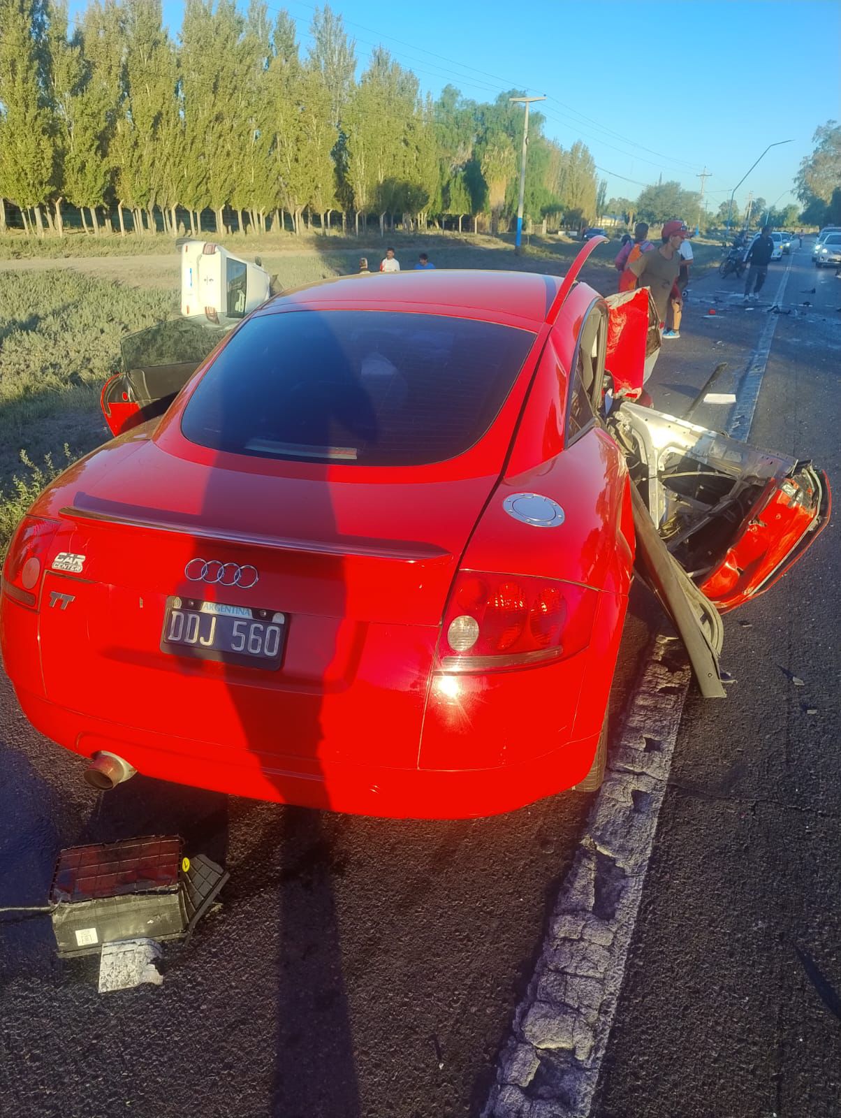 El vehículo marca Audi TT circulaba por Ruta 20 en sentido oeste y antes de llegar a calle Caico es embestido de frente por un vehículo marca Renault Logan conducido por un Policía acompañado por su pareja y su hija de 1 año de edad aproximadamente quienes fallecieron en el acto.