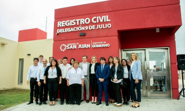 El Ministerio de Gobierno, a través de la Dirección de Registro de Estado Civil y Capacidad de las Personas, inauguró una nueva sede en el departamento de 9 de Julio, ubicada en calles diagonal Sarmiento y Doncel (S/N), que corresponde a la delegación número 38 del Registro Civil en toda la provincia de San Juan.