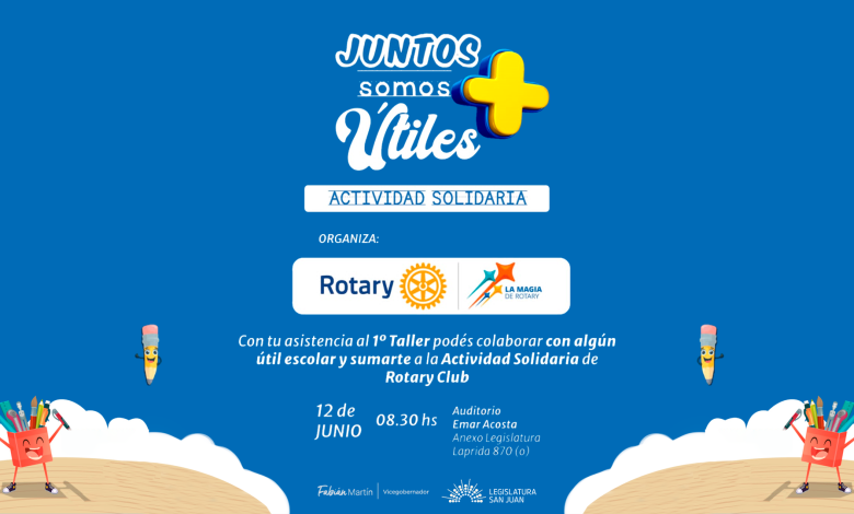 Con el objetivo de colaborar con estudiantes que más lo necesitan, se lanza una nueva edición de la actividad solidaria “Juntos somos útiles”, organizada por el Rotary Club y la fundación La Magia de Rotary, con el acompañamiento de la Legislatura de San Juan.
