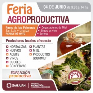 Este sábado 4 de junio se realizará la 70° edición de la Feria Agroproductiva en el Paseo de Las Palmeras del Parque de Mayo, ubicado en calle San Luis y Urquiza desde las 9.30 hasta las 14.