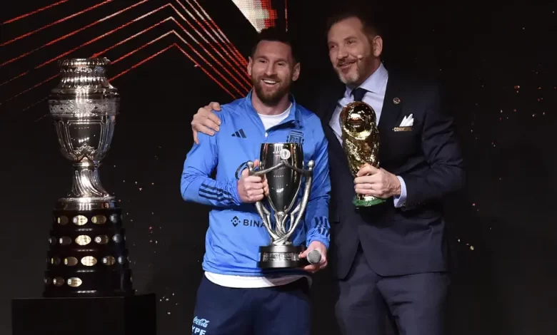 “Más allá de todo el cariño que venimos recibiendo creo que no somos completamente concientes de lo que logramos. Estoy realizado con esta, era la que me faltaba. Pude conseguir todo en el fútbol”, enfatizó el mejor jugador del mundo. Además se descubrió una estatua en tamaño real de Messi con la Copa del Mundo. Esta va a quedar en el Museo de la Conmebol, junto a la de Pelé y Maradona. Por último, se le entregó el bastón del mando que lo determina como el nuevo “líder del fútbol mundial”.