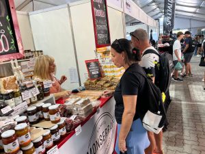 Está instalada en el sector este del Teatro del Bicentenario e incluye stands comerciales, productos locales y tienda oficial, además de la ronda de negocios en el interior del teatro.