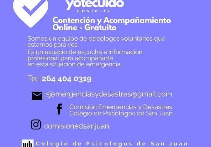 Desde el Colegio de Psicólogos de San Juan se lleva adelante el programa "Yo te cuido", una línea telefónica de asistencia gratuita a las personas que la están pasando mal durante el aislamiento.