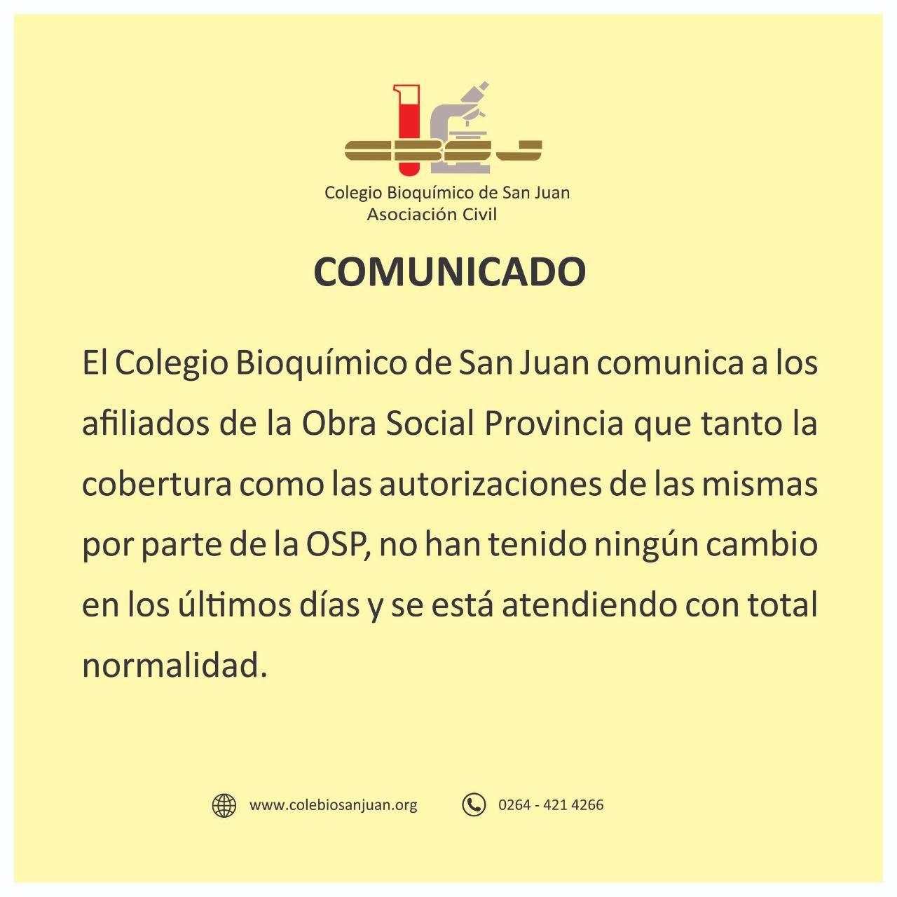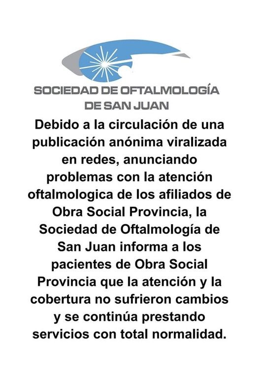 En este sentido, compartimos información oficial del Colegio Bioquímico de San Juan y de la Sociedad de Oftalmología de San Juan avalando tal situación. Así comienza el comunicado oficial emitido por las autoridades ante la constante consulta en los diferentes medios por parte de los afiliados preocupados por esta situación.