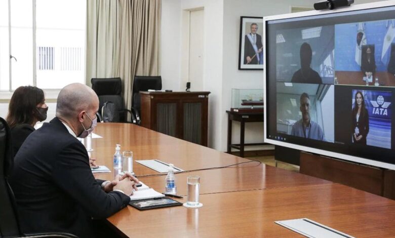 Fue una reunión virtual a través de Zoom, con el Ministerio de Transporte como anfitrión de la Asociación Internacional de Transporte Aéreo (IATA). IATA acusó al Gobierno de "dejar tiradas" por el mundo a 1.400 personas por día, a partir de las últimas restricciones implementadas por la Administración de Alberto Fernández. El encuentro duró 10 minutos y no se llegó a ninguna conclusión.