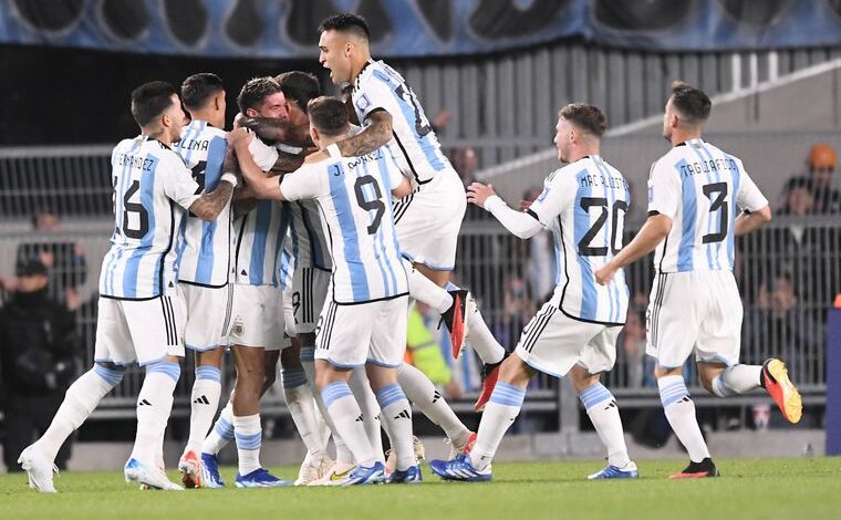 Emiliano Martínez; Gonzalo Montiel, Cristian Romero, Nicolás Otamendi, Nicolás Tagliafico; Rodrigo De Paul, Enzo Fernández, Alexis Mac Allister; Nicolás González, Lionel Messi y Julián Álvarez o Lautaro Martínez. DT: Lionel Scaloni.