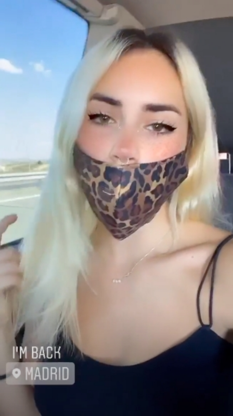 En sus redes sociales hizo varios posteos. Se filmó con el barbijo, saliendo del aeropuerto, y lo subió a Instagram: «I’m back Madrid», puso. También subió una selfie recién llegada al hotel, con una gorra donde se lee Feminist (Feminista) y un contundente «Obvio».