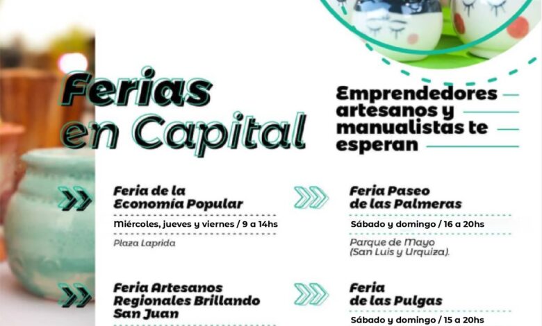 El Paseo de las Palmeras del Parque de Mayo, Plaza Desamparados, Plaza Laprida y el Paseo de las Pulgas sumados a artesanos, emprendedores y manualistas de San Juan, proponen amplia variedad de regalos con precios accesibles para disfrutar entre amigos o en familia.