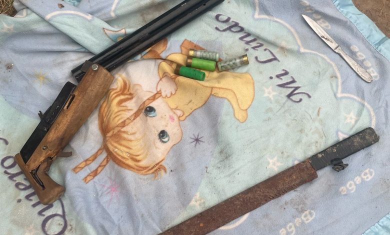 Al llegar a la vivienda, los agentes observaron al sospechoso excavando en el patio y manipulando un envoltorio. Al ser abordado, el hombre manifestó poseer un arma de fuego y amenazó con disparar contra los policías. En respuesta a esta amenaza, la policía actuó de manera inmediata, logrando reducir al individuo y asegurar el envoltorio, que resultó contener un arma de fuego de fabricación casera, conocida como «tumbera».