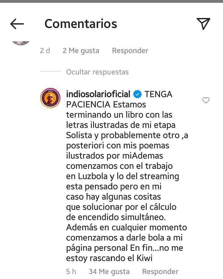 Lejos de estar quieto, el Indio Solari demostro que está en constante movimiento y con muchos proyectos por delante. Tras abrirse cuentas en Instagram y Twitter en noviembre del año pasado, el músico logró un contacto más estrecho con sus seguidores, que siempre están ávidos de novedades.