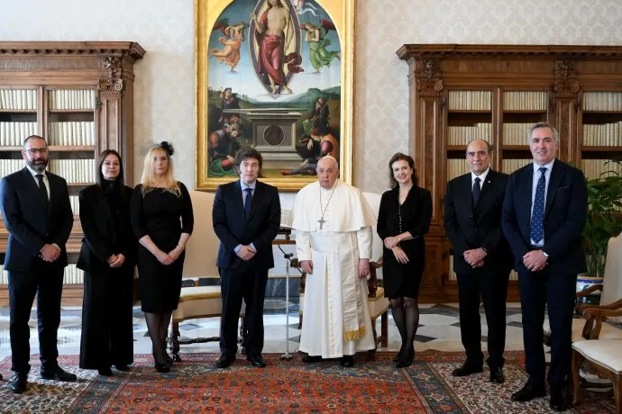 La de hoy fue la primera reunión privada entre Milei y el Papa, luegi de que ayer se saludaran brevemente al inicio y al final de la misa por la canonización de Mama Antula de la que participó el mandatario.