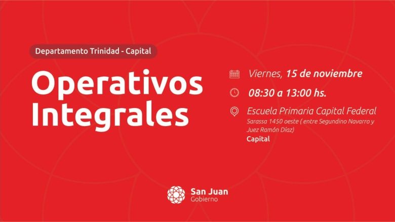 El Ministerio de Familia y Desarrollo Humano, junto a varios ministerios, organiza el 22º operativo integral. En este caso, llegará hasta los vecinos de Trinidad en Capital en la Escuela Primaria Nº 9 Capital Federal, ubicada en C. S Sarassa Oeste 1450, el viernes 15 de noviembre de 8.30 a 13.