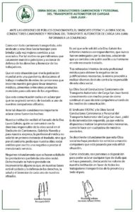 Para finalizar afirmó que tanto ella como el Sindicato se ponen a disposición de la Justicia en el momento que lo requieran. Por su parte, el Sindicato de Camioneros a última hora de anoche emitió una solicitada aclarando esta situación. A continuación, la solicitada.
