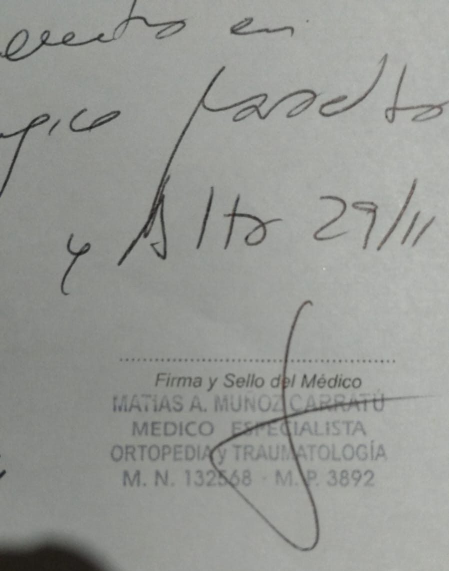 Por vivir en zona alejada la mantenían informada vía telefónica hasta comunicarle que debía asistir al Hospital Marcial Quiroga y dar con el traumatólogo Matías Muñoz Carratu.
